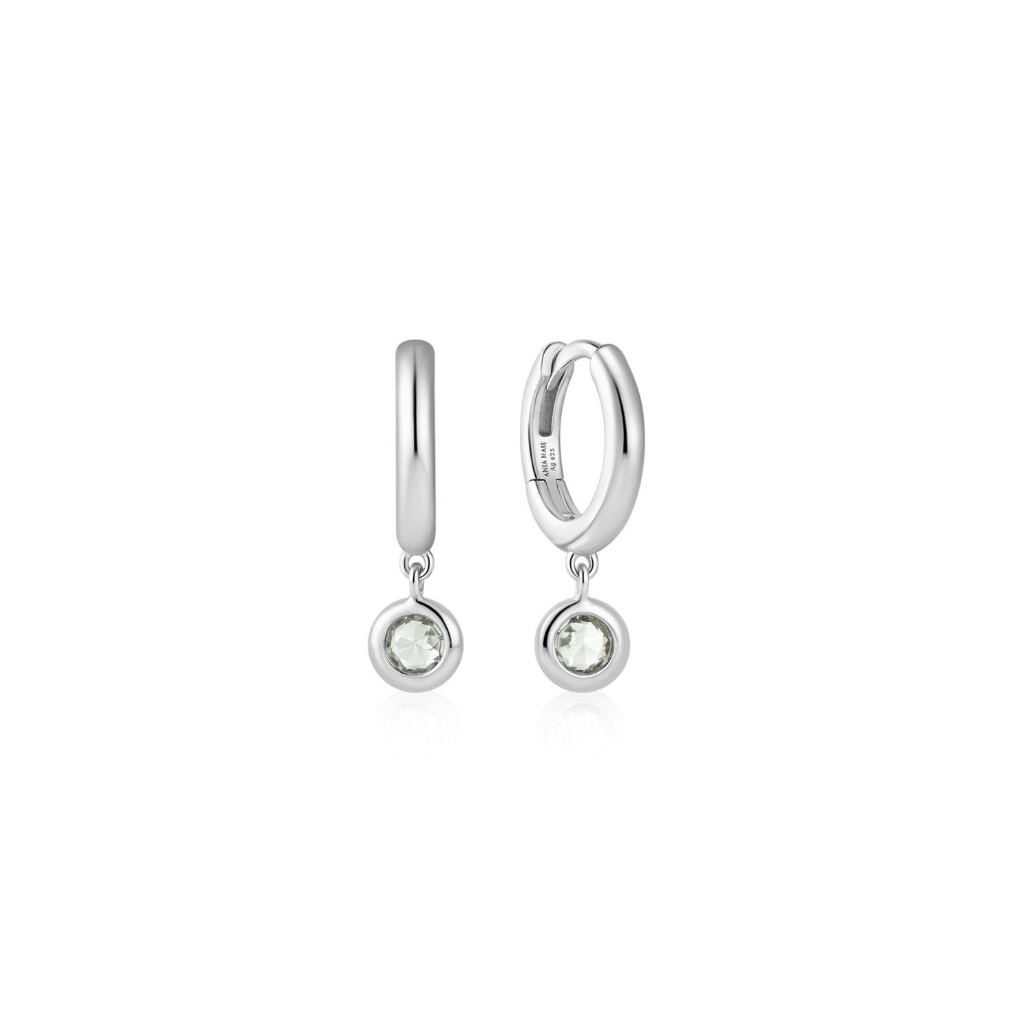 Voor wie de schoonheid van details waardeert. Een soepele oorring met een bungelende mintgroene zirkonia, die bij elke beweging het licht vangt.