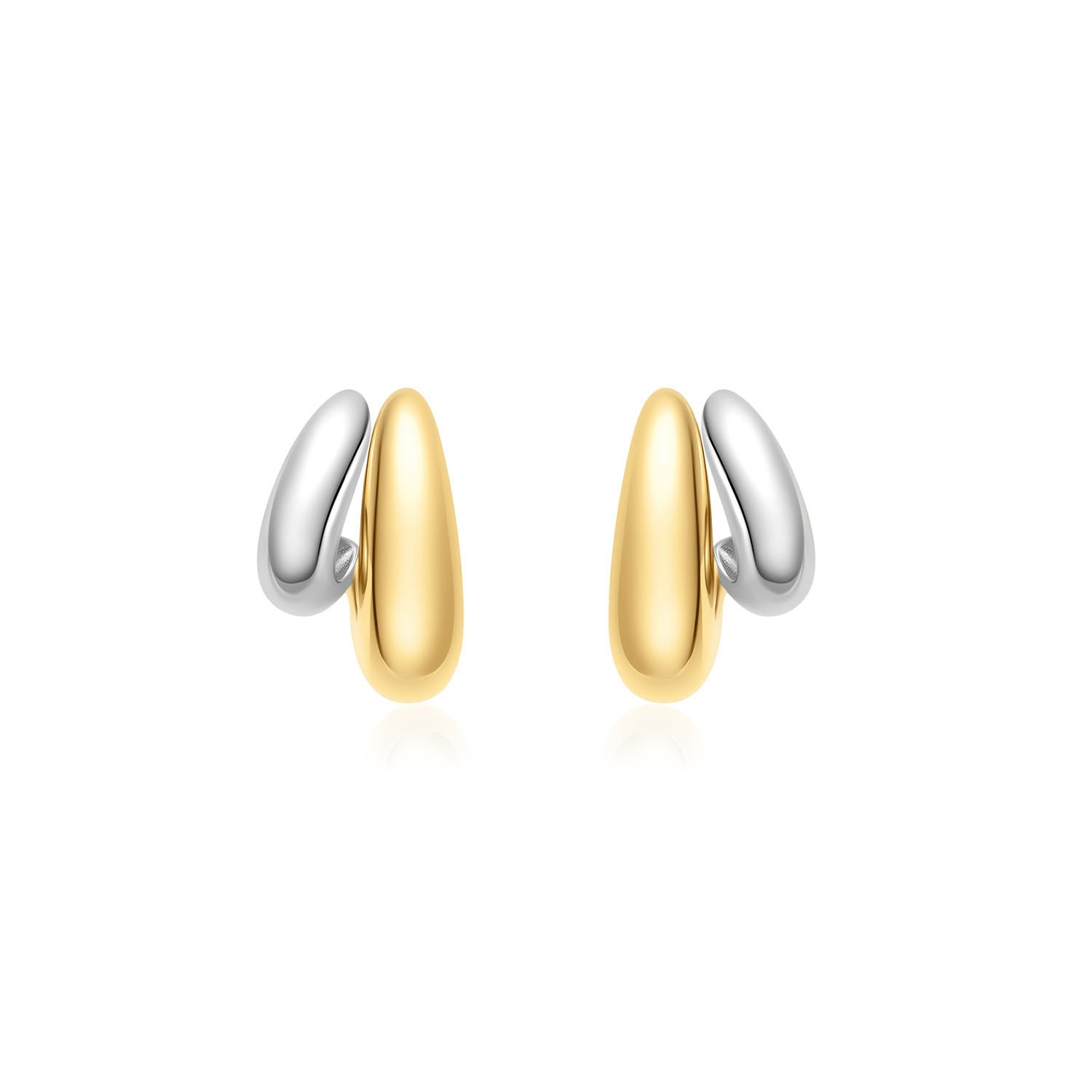 Deze opvallende en verfijnde oorringen hebben een dubbel ontwerp met een bolvormige goudkleurige oorring naast een kleinere, slanke zilveren oorring. De sculpturale vorm en het gepolijste contrast zorgen voor een moderne, maar tijdloze look. Ontworpen voor comfort de hele dag door. Voor iedere vrouw die haar stijl met zelfvertrouwen en individualiteit uitdrukt.